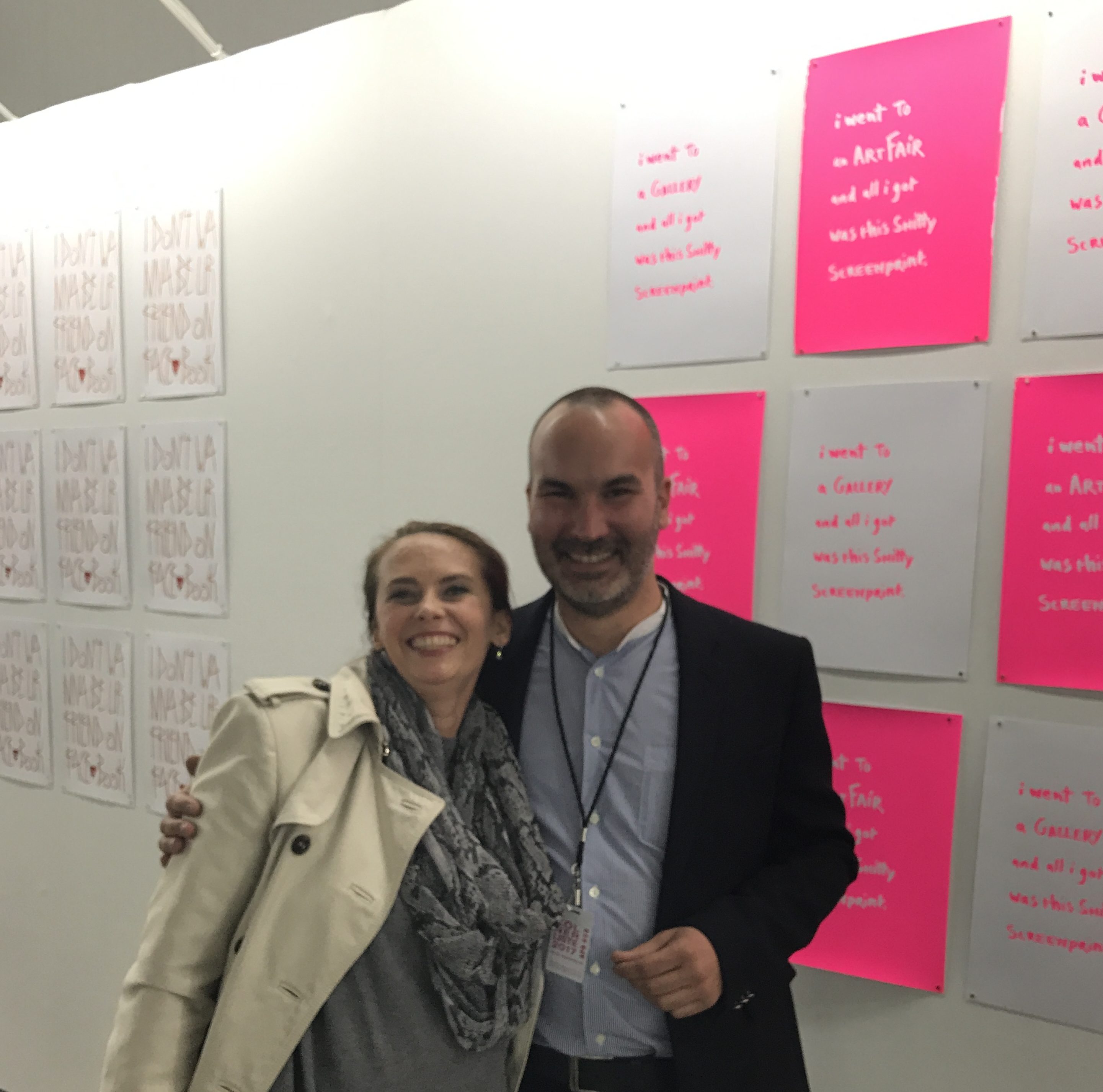So fröhlich gestimmt, betraten wir die Messe. Und direkt zu Beginn stieß ich auf das pinkeste Pink, das man sich vorstellen kann. Auf einen Druck der Open Walls Gallery aus Berlin! Ich konnte nicht anders und kaufte den Druck als Erste (1/50). Und so bin ich jetzt stolze Besitzerin meines ersten Kunstwerks… Wir haben davon auch noch ein paar lustige Bilder geschossen! Danke an Guillaume Trotin, den Galeristen, dafür, dass er den Spaß mitgemacht hat.