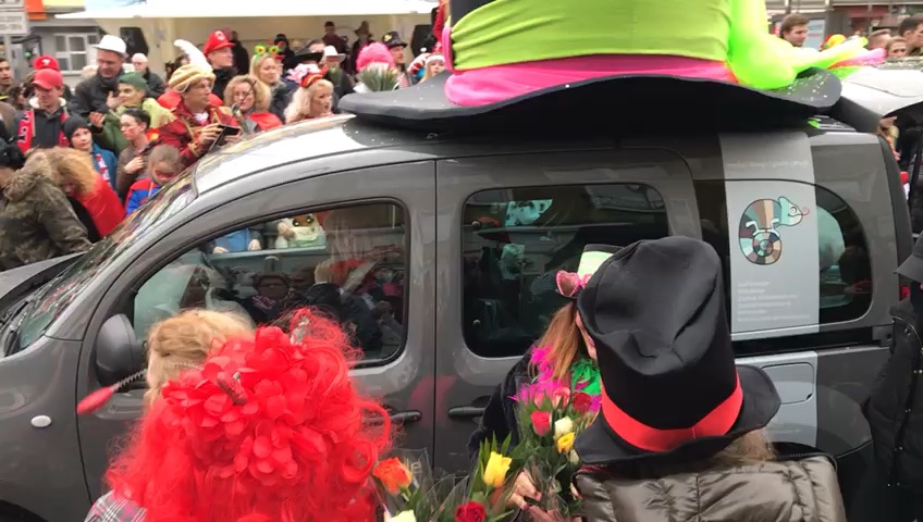 Nur noch zur Anmeldung und schon ging es fast los! Dachten wir! Aufgrund von verstärkten Sicherheitsmaßnahmen durften wir noch vier Wagenengel und zwei Ordner organisieren. Also sechs Ordner bei zehn Teilnehmerinnen. Fürs nächste Jahr haben wir übrigens schon jetzt mehr als doppelt so viele Anmeldungen… (Yes!) Jedenfalls mussten jetzt auch noch Wagenengel und Ordner her. Wir hatten Glück, weil sich schon nach zwei Stunden auf unserem Aufruf vier Mädels meldeten. Denen ich an dieser Stelle nochmal danken möchte! Ihr habt das toll gemacht! Die Ordner fanden sich dann in meiner besten Freundin, die ein Rosenmontagszugprofi ist, und dem Ehemann einer Lady.